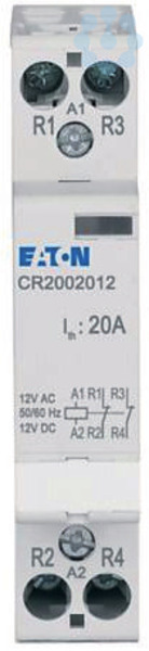 Installationsschütz, Steuerspannung 12V AC/DC, Bemessungsbetriebsstrom AC1 20A, Funktion: 2 x Öffner, Einfache Schnappbefestigung auf 35mm Hutschiene, 1TE, Normen IEC/EN 60947-4-1 und IEC/EN 61095