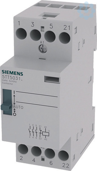 INSTA-Schütz 0/1-Automatik mit 3 Schließern und 1 offener Kontakt für AC 230V, 400V 25A Ansteuerung AC 230V Siemens Schaltgeräte für Anwendungen im Wohn-, Zweckbau und industriellen Anwendungen. Die innovativen Schaltgeräte von Siemens sind ein wichtiger Bestandteil der SENTRON Komponenten für die Elektroinstallation. Mit den Fernschaltern, Schaltrelais, Insta-Schützen und Zeitschaltuhren bieten sie zahlreiche Möglichkeiten zur Realisierung diverser Schaltfunktionen. Ob für Wohnbau, Infrastruktur oder industrielle Anwendungen, Siemens bietet das richtige Portfolio für alle Schaltfunktionen. So haben Sie für jede Anforderung das passende Gerät! Die Schaltgeräte von Siemens zeichnen sich vor allem aus durch: 1. Komfortable und einfache Montage- sowie Anschlusstechnik. 2. Zuverlässige Sicherheit bei der Installation dank standardmäßigem Berührungsschutz. 3. Umfangreiches und problemlos montierbares Zubehör. 4. Optimale Technik für Ihre Sicherheit - nur von Siemens. www