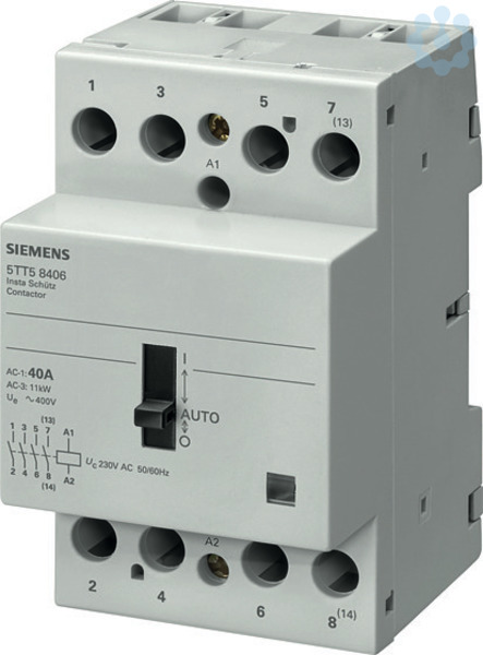 INSTA-Schütz 0/1-Automatik mit 3 Schließern und 1 offener Kontakt für AC 230V, 400V 40A Ansteuerung AC 230V Siemens Schaltgeräte für Anwendungen im Wohn-, Zweckbau und industriellen Anwendungen. Die innovativen Schaltgeräte von Siemens sind ein wichtiger Bestandteil der SENTRON Komponenten für die Elektroinstallation. Mit den Fernschaltern, Schaltrelais, Insta-Schützen und Zeitschaltuhren bieten sie zahlreiche Möglichkeiten zur Realisierung diverser Schaltfunktionen. Ob für Wohnbau, Infrastruktur oder industrielle Anwendungen, Siemens bietet das richtige Portfolio für alle Schaltfunktionen. So haben Sie für jede Anforderung das passende Gerät! Die Schaltgeräte von Siemens zeichnen sich vor allem aus durch: 1. Komfortable und einfache Montage- sowie Anschlusstechnik. 2. Zuverlässige Sicherheit bei der Installation dank standardmäßigem Berührungsschutz. 3. Umfangreiches und problemlos montierbares Zubehör. 4. Optimale Technik für Ihre Sicherheit - nur von Siemens. www