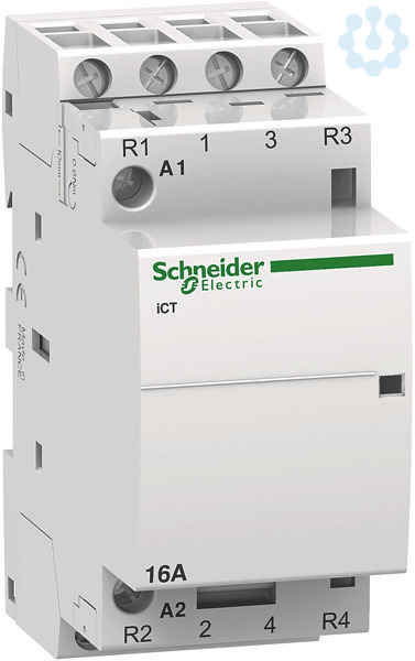 Installationsschütz Acti 9 iCT. Nennstrom 16A, 2S, 2Ö, Steuerspannung 220/240V, 50Hz, Isolationsspannung (Ui) 500V AC. Schalten von Stromkreisen bis 100A. Klemmen IP 20. Geräuscharmes Schalten. Mechanische Schaltstellungsanzeige. Installationsschützen mit Vorwahl verfügen über einen frontseitigen Betriebsartenwahlschalter mit vier Schaltstellungen. Kompatibel mit der gesamten Produktreihe Acti 9. Der iCT Installationsschütz erfüllt folgende Normen- EN 61095 und IEC 1095. Des Weiteren ist diese Baureihe VDE zertifiziert!.