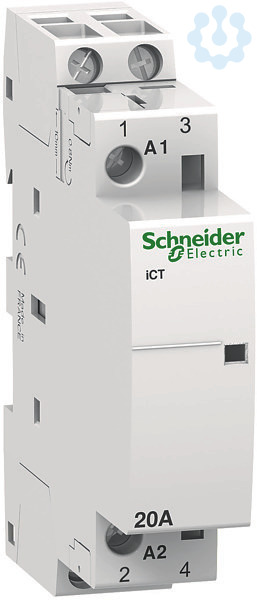 Installationsschütz Acti 9 iCT. Nennstrom 20A, 2S, Steuerspannung 230/240V, 50Hz, Isolationsspannung (Ui) 500V AC. Schalten von Stromkreisen bis 100A. Klemmen IP 20. Geräuscharmes Schalten. Mechanische Schaltstellungsanzeige. Installationsschützen mit Vorwahl verfügen über einen frontseitigen Betriebsartenwahlschalter mit vier Schaltstellungen. Kompatibel mit der gesamten Produktreihe Acti 9. Der iCT Installationsschütz erfüllt folgende Normen- EN 61095 und IEC 1095. Des Weiteren ist diese Baureihe VDE zertifiziert!.