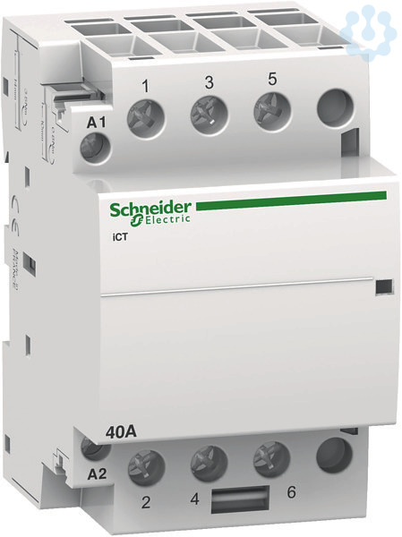 Installationsschütz Acti 9 iCT. Nennstrom 40A, 3S, Steuerspannung 220/240V, 60Hz, Isolationsspannung (Ui) 500V AC. Schalten von Stromkreisen bis 100A. Klemmen IP 20. Geräuscharmes Schalten. Mechanische Schaltstellungsanzeige. Installationsschützen mit Vorwahl verfügen über einen frontseitigen Betriebsartenwahlschalter mit vier Schaltstellungen. Kompatibel mit der gesamten Produktreihe Acti 9. Der iCT Installationsschütz erfüllt folgende Normen- EN 61095 und IEC 1095. Des Weiteren ist diese Baureihe VDE zertifiziert!.