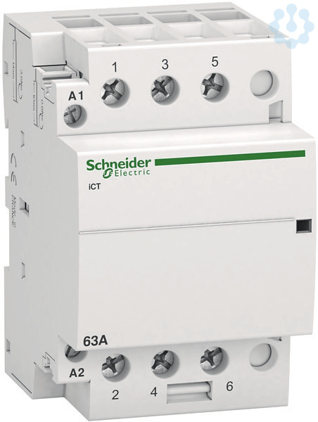 Installationsschütz Acti 9 iCT. Nennstrom 63A, 3S, Steuerspannung 220/240V, 50Hz, Isolationsspannung (Ui) 500V AC. Schalten von Stromkreisen bis 100A. Klemmen IP 20. Geräuscharmes Schalten. Mechanische Schaltstellungsanzeige. Installationsschützen mit Vorwahl verfügen über einen frontseitigen Betriebsartenwahlschalter mit vier Schaltstellungen. Kompatibel mit der gesamten Produktreihe Acti 9. Der iCT Installationsschütz erfüllt folgende Normen- EN 61095 und IEC 1095. Des Weiteren ist diese Baureihe VDE zertifiziert!.