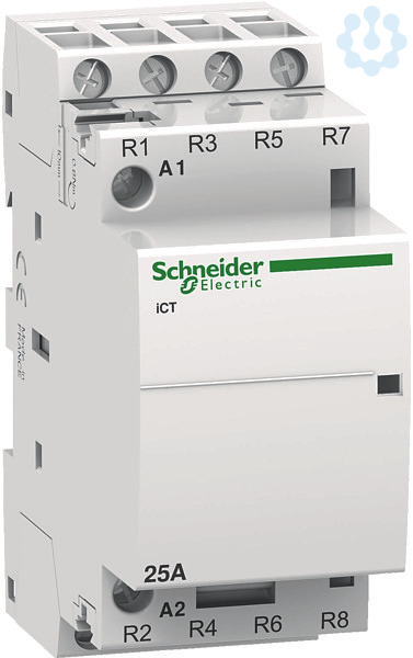 Installationsschütz Acti 9 iCT. Nennstrom 25A, 4Ö, Steuerspannung 220/240V, 50Hz, Isolationsspannung (Ui) 500V AC. Schalten von Stromkreisen bis 100A. Klemmen IP 20. Geräuscharmes Schalten. Mechanische Schaltstellungsanzeige. Installationsschützen mit Vorwahl verfügen über einen frontseitigen Betriebsartenwahlschalter mit vier Schaltstellungen. Kompatibel mit der gesamten Produktreihe Acti 9. Der iCT Installationsschütz erfüllt folgende Normen- EN 61095 und IEC 1095. Des Weiteren ist diese Baureihe VDE zertifiziert!.