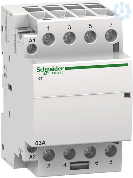 Installationsschütz Acti 9 iCT. Nennstrom 63A, 4S, Steuerspannung 24V, 50Hz, Isolationsspannung (Ui) 500V AC. Schalten von Stromkreisen bis 100A. Klemmen IP 20. Geräuscharmes Schalten. Mechanische Schaltstellungsanzeige. Installationsschützen mit Vorwahl verfügen über einen frontseitigen Betriebsartenwahlschalter mit vier Schaltstellungen. Kompatibel mit der gesamten Produktreihe Acti 9. Der iCT Installationsschütz erfüllt folgende Normen- EN 61095 und IEC 1095. Des Weiteren ist diese Baureihe VDE zertifiziert!.