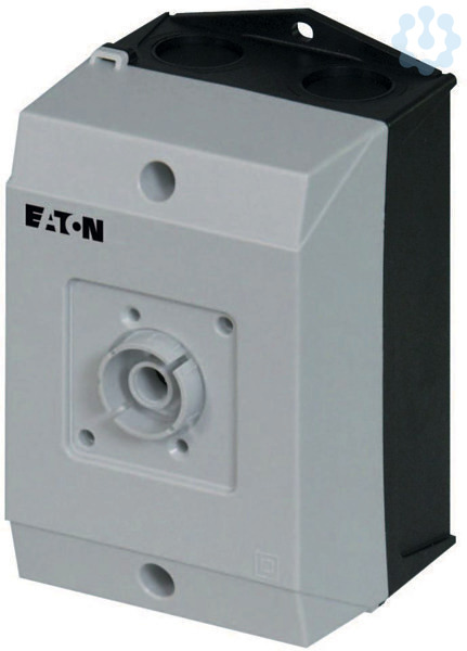 Kleingehäuse, Schutzart IP65, glasfaserverstärktes Polycarbonat, Gehäuseunterteil RAL 9005, schwarz/Gehäuseoberteil RAL 7035, hellgrau, Metrische Vorprägungen oben, unten, in der Rückwand, Leitungsdurchsteckmembran, 2 Schutzkappen zum Abdecken der Durchsteckmembran, Leuchtmelder L-. in Unterteilvorprägung M20/M25 einbaubar, für Schalter T0-../XZ, 1-2 Baueinheiten