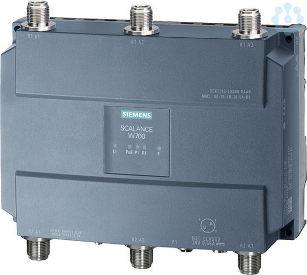 IWLAN Access Point, SCALANCE W788-2 M12, 2 Radios, 6 N-CON-Antennenanschluss, iFeatures support via KEY-PLUG, IEEE 802.11a/b/g/h/n, 2,4/5GHz, brutto 450 Mbit/s pro Radio, 1x M12 max. 1 Gbit/s, PoE, Redundant DC 24 V,M12 A-Kodiert IP65, -20..+60°C, Plug-Schacht, WPA2/802.11i/e, Länderzulassungen beachten! CERT ID. RAPN-W2-M12-E3, beinhaltet: MPCIE-R1-ABGN-U3, Lieferumfang: Handbücher auf CD-ROM, deutsch/englisch, Verschlusskappen M12, z. Betrieb außerhalb USA/Israel SCALANCE W788-2 M12 2xRadio, 6xN-CON-Antennenanschluss, iFeatures support via KEY-PLUG, IEEE 802.11a/b/g/h/n, 2,4/5 GHz, brutto 450 Mbit/s pro Radio, 1x M12 max. 1 Gbit/s, PoE, Redundant DC 24 V,M12 A-Kodiert IP65, -20°C - +60°C, Plug-Schacht, zum Betrieb außerhalb der USA/Israel. Access Point für die drahtlosen Vor-Ort-Vernetzung von Anlagenteilen mit Bedarf an hohen Bandbreiten. 1 Stück.Access Point mit zwei eingebauten Funkinterface für den Aufbau von Funkverbindungen mit iFeatures (iPCF/iPCF-MC) über Wechselmedium (Plug). Die Geräte sind für in