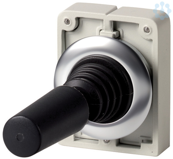 Joystick, Sortiment: RMQ-Titan, Einzelgerät, Beschreibung: mit einem Schaltpunkt je Betätigungsrichtung, mit Metallachse, 2 Stellungen, Schutzart: IP66, Frontring Metall, Anbindung an SmartWire-DT: ja, mit RMQ-SWD-Anschaltungen, Frontabmessung: Ø 36 mm, Funktion: rastend, horizontal, Normen und Bestimmungen: IEC/EN 60947, VDE 0660