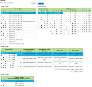 Temperaturmessumformer für KTY-Sensoren. Strom- und Spannungsausgangssignal. Konfiguration per DIP Schalter. Versorgungsspannung DC 24 V. 6 mm Baubreite. lichtgrau