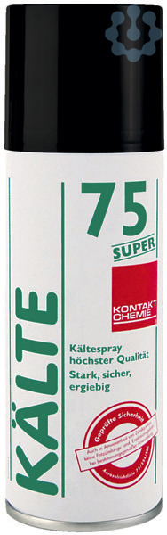 Hohe Kühlwirkung (Bis max. -55 °C). Arbeiten unter Spannung möglich. Verdunstet schnell und rüchstandsfrei. KÄLTE 75 SUPER enthält eine absolut unbrennbare Kältemischung mit besonders hoher Kühlwirkung. Das ausgewogene Dosiersystem verhindert unnötiges Verspritzen der Kältemischung und sorgt für eine hohe Ergiebigkeit.Kältesprays sind ideal geeignet, um Bauteile und Oberflächen blitzschnell abzukühlen. Dies wird genutzt bei der thermischen Fehlersuche an elektrischen Bauteilen, bei der Funktionsprüfung von Thermostaten und Temperaturfühlern, bei einfachen Klimatests oder zum Schockfrieren von Gummi, Kunststoff oder Kleberesten.Gemäß Sicherheitsprüfung besteht auch in Anwesenheit von Zündquellen keine Entzündungs- und Explosionsgefahr, so dass das Kältespray insbesondere bei Arbeiten unter Spannung und in Ex-Schutz-Bereichen eingesetzt werden kann.