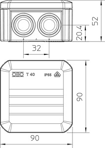 Kabelabzweigkasten zum Verbinden von Kabeln und Leitungen im Innenbereich und geschützten Außenbereichen. Quadratische Form mit Einsteckdichtungen an den Seiten und Ausschlageinführungen im Boden. Geeignet für die Wand-/ Deckenmontage und die Montage auf Montageblechen. Mit der Möglichkeit zur Innenbefestigung. Mit festsitzendem Klemmdeckel. Hergestellt aus halogenfreien Materialien. Kabelabzweigkasten gemäß DIN EN 60670. Flammwidrig nach DIN EN 60695-2-11, Prüftemperatur 650°C. Schlagfestigkeit IK07 gemäß DIN EN 50102.