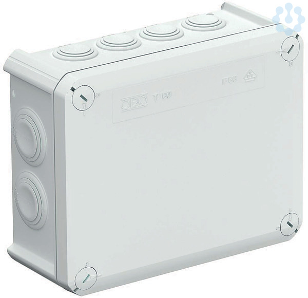 Kabelabzweigkasten zum Verbinden von Kabeln und Leitungen im Innenbereich und geschützten Außenbereichen. Rechteckige Form mit Einsteckdichtungen an den Seiten und Ausschlageinführungen im Boden. Geeignet für die Wand-/ Deckenmontage und die Montage auf Montageblechen. Mit der Möglichkeit zur Innenbefestigung und Montage über die Eckdome. Deckel mit Schnellverschluss, plombierbar. Hergestellt aus halogenfreien Materialien. Kabelabzweigkasten gemäß DIN EN 60670. Flammwidrig nach DIN EN 60695-2-11, Prüftemperatur 650°C. Schlagfestigkeit IK05 gemäß DIN EN 50102.