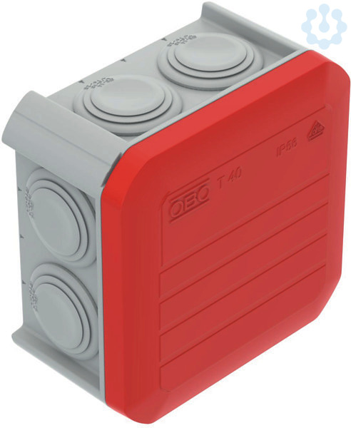 Kabelabzweigkasten zum Verbinden von Kabeln und Leitungen im Innenbereich und geschützten Außenbereichen. Quadratische Form mit Einsteckdichtungen an den Seiten und Ausschlageinführungen im Boden. Geeignet für die Wand-/ Deckenmontage und die Montage auf Montageblechen. Mit der Möglichkeit zur Innenbefestigung. Mit festsitzendem Klemmdeckel. Hergestellt aus halogenfreien Materialien. Kabelabzweigkasten gemäß DIN EN 60670. Flammwidrig nach DIN EN 60695-2-11, Prüftemperatur 650°C. Schlagfestigkeit IK07 gemäß DIN EN 50102.