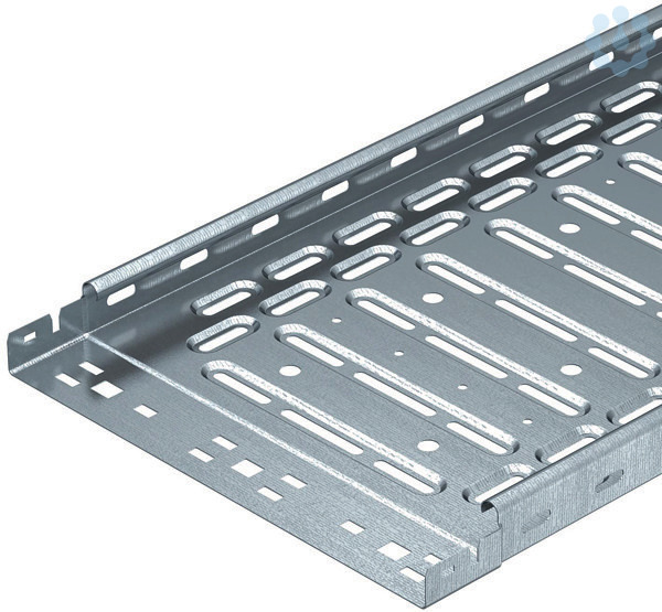Rationelles-Kabelrinnen-System-Magic mit 35 mm Seitenhöhe. Kabelrinne mit Schnellverbindungs-System, durchgängiger Potenzialausgleich ohne Zusatzbauteile, inklusive aller relevanten Verbindungsbauteile zur zeitsparenden und wirtschaftlichen Installation, mit gesickter Längsbodenlochung 7 x 20 mm zur Auslegermontage und ab der Breite 200 mm mit Quersickung 7 x 32 mm zur Kabelbelüftung und zur Montageerleichterung. Mittenlochung 11 mm für die direkte Gewindestangenabhängung. Durchgängige Seitenlochung 7 x 20 mm als Verbinderlochung.