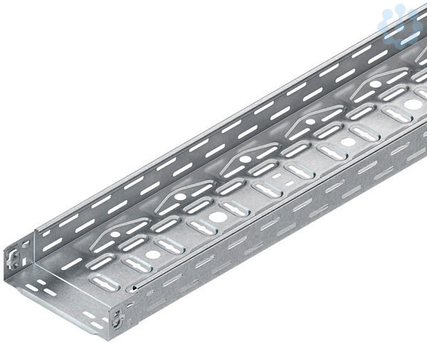 Kabelrinne, leicht, nach DIN EN 61537, mit angeprägtem Stoßstellenverbinder zur schraublosen Schnellbefestigung und mit versetzt angeordneter Boden- und Seitenperforation für stufenlose Befestigung und Anbringung der Systembauteile, Boden zusätzlich gesickt und mit durchgehend mittiger Schlüssellochperforation zur Abhängung mit Gewindestäben M 10/... versehen, mit durchgehend mittiger Bodenlochung sowie einer 2-reihigen aus der Mitte durchgehend symmetrisch angeordneten Bodenlochung zur Aufnahme von Kabelverschraubungen. Zur Verwendung im Funktionserhalt bitte Zusatzvorschriften beachten! Erforderliches Befestigungszubehör für den Funktionserhalt 4x FLM 6X12 bitte gesondert bestellen! VDE zertifiziert!