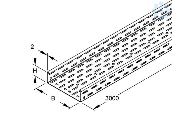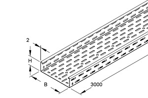 Kabelrinne schwer, 60x200x3000 mm, t=2,0 mm, gelocht, Stahl, feuerverzinkt DIN EN ISO 1461, ohne Verbinder