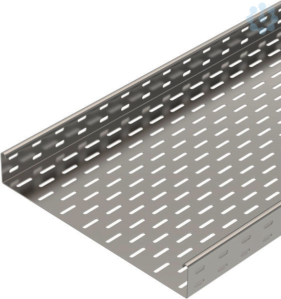 Schweres-Kabelrinnen-System mit 60 mm Seitenhöhe. Kabelrinne mit Bodenlochung 7 x 32 mm zur Kabelbelüftung und zur Montageerleichterung. Seitenlochung 7 x 20 mm als Verbinderlochung. Mit oben eingerolltem Seitenholm zur Verstärkung und als Kantenschutz.