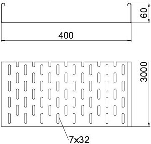 Schweres-Kabelrinnen-System mit 60 mm Seitenhöhe. Kabelrinne mit Bodenlochung 7 x 32 mm zur Kabelbelüftung und zur Montageerleichterung. Seitenlochung 7 x 20 mm als Verbinderlochung. Mit oben eingerolltem Seitenholm zur Verstärkung und als Kantenschutz.