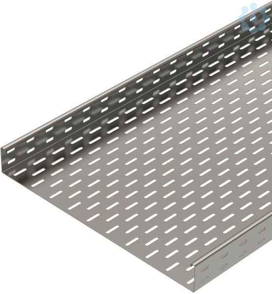 Schweres-Kabelrinnen-System mit 60 mm Seitenhöhe. Kabelrinne mit Bodenlochung 7 x 32 mm zur Kabelbelüftung und zur Montageerleichterung. Seitenlochung 7 x 20 mm als Verbinderlochung. Mit oben eingerolltem Seitenholm zur Verstärkung und als Kantenschutz.