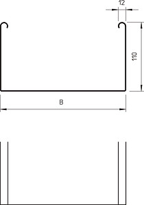 Schweres-Kabelrinnen-System ungelocht mit 110 mm Seitenhöhe. Verbinderlochung 7 x 20 mm. Mit oben eingerolltem Seitenholm zur Verstärkung und als Kantenschutz.
