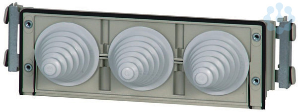 Kabelschelle mit 3x Stupen-Kabeltüllen, ermöglicht das Einlegen von Kabeln oder Schienen von vorne, Gehäusemaß=375mm, für 3 Kabel 14-68mm, inklusive Befestigungsmaterial
