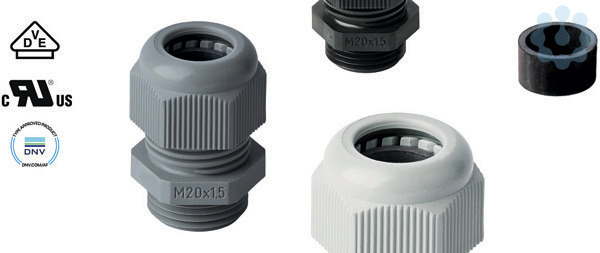 integrierte Zugentlastung, großer Dicht- und Klemmbereich, montagefreundlich, RAL7035, Anschlussgewinde lang, Kabelverschraubung Metrisch Kunststoff