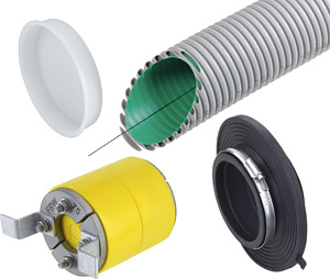 Die Vorteile des Systems liegen in der unkomplizierten Verlegung des Kabelschutzrohres bis in den Hausansschlussraum, dem einfachen Ablängen des Rohres auf die benötigte Höhe des Fußbodenaufbaues, sowie der indivduellen Anpassung an verschiedene Kabeldurchmesser vor Ort durch Segmentringtechnik der Kabu-IN DD Dichtung. Gas- und Druckwasserdichtheit: Type 75 bis 1,5 bar und Type 110 bis 1 bar, geprüft nach DVGW VP 601. Anwendungsbereich: W1-E nach DIN 18533, WU-Beton der Beanspruchungsklasse 1 und 2. Geeig