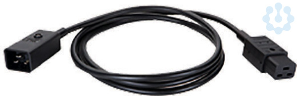 Stromverteiler Verlängerung Stromleitung 16A/ 250V~ 1,5 m H05VV-F 3G 1,5 mm² schwarz C20 Kaltgeräte- Stecker IEC 60320. zentral. montiert C19- Kaltgerätesteckdose IEC 60320. zentral. montiert unverpackt