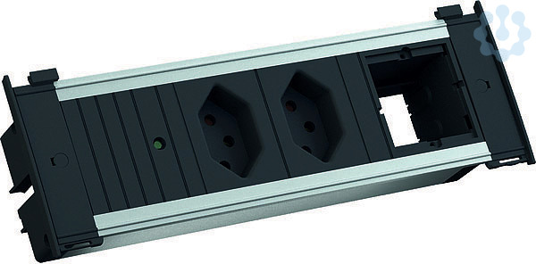 KAPSA S Steckdosenleiste 2xCH T13 0° Steckdosen Schweiz mit Thermosicherung 10A 1xCustom Modul leer Zuleitung: 0,2m H05VV-F 3G1,5mm² schwarz mit GST18 Stecker Optionales Zubehör: 1xDeckel verpackt im Karton.