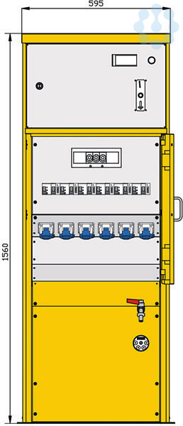 Anschluss der Versorgungsleitungen Tür mit Griff und Kugelschnapper Kabelausführung bei geschlossener Tür möglich Schutzart: IP44 Größe ca.: 1560 x 595 x 220mm / H-B-T