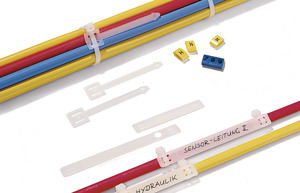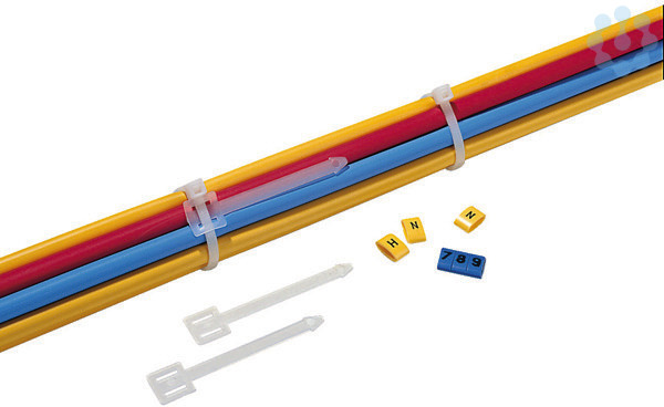 Kennzeichnungsschilder und -pfeile zur Befestigung mit Kabelbindern. Beschriftung mittels Markierstift T82 oder Bestückung mit Ovalgrip. AT1 für 7 Ovalgrip-Kennzeichnungstüllen der Größe 50. AT2 für 8 Ovalgrip-Kennzeichnungstüllen der Größe 85. AT3 für 14 Ovalgrip-Kennzeichnungstüllen der Größe 85. Individuell bedruckte Schilder und Pfeile auf Anfrage erhältlich. Die Kennzeichnungsschilder und -plättchen eignen sich zur Kennzeichnung von Kabelbäumen, Leitungsbündeln und anderen Objekten vor und nach der Montage. Mit Kabelbindern in beliebigen Längen kann eine Befestigung am Bündelgut erfolgen.