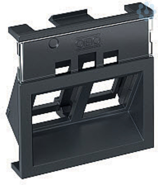 Trägerplatte (inkl. Beschriftungsfeld und Schrägauslass) für Keystone-Module. Breite der Öffnung: 14,9 mm Höhe der Öffnung: 19,4 mm.
