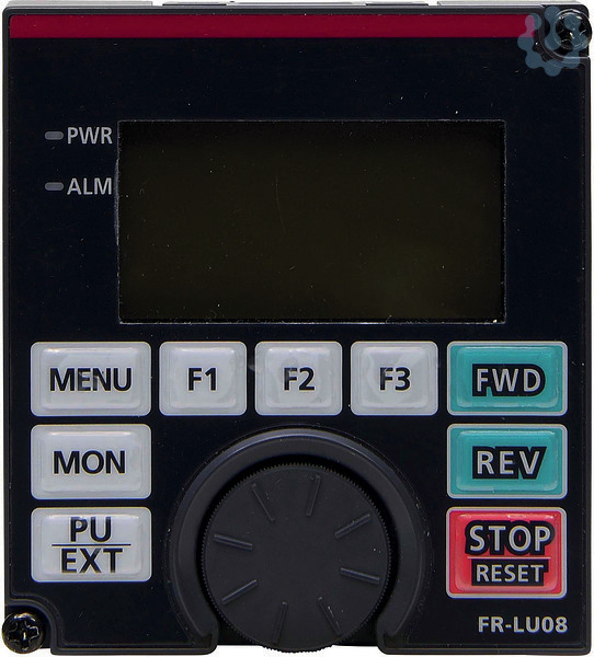Die optionale Bedieneinheit FR-LU08 hat eine LCD-Anzeige zur Darstellung von Texten und Menüs. In ihr können die Parameter von bis zu drei Frequenzumrichtern abgespeichert und dann auf andere Frequenzumrichter übertragen werden. Wenn die Bedieneinheit FR-LU08 am Frequenzumrichter angeschlossen ist, lässt sich die interne Uhr mit der Uhr der Bedieneinheit synchronisieren (Echtzeituhr). Die Anzeige kann zwischen folgenden Landessprachen umgeschaltet werden: Deutsch, Englisch, Französisch, Spanisch, Schwedisch, Italienisch, Finnisch und Japanisch.