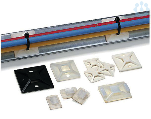 Selbstklebender Befestigungssockel. Synthesekautschuk-Kleberfür universelle Anwendungen. Größtmögliche Klebefläche. 4-Wege Einschlaufrichtung des Kabelbinders für eine schnelle und flexible Montage. Schnell und einfach auch mit einer Schraube fixierbar. Die Haupteinsatzgebiete der selbstklebenden TY-ITS Sockel befinden sich im Schaltschrankbau, in der industriellen Serienfertigung und in Bereichen, wo die große Bodenplatte eine stabile Befestigung gewährleisten soll, aber eine Schraubbefestigung nicht möglich ist.