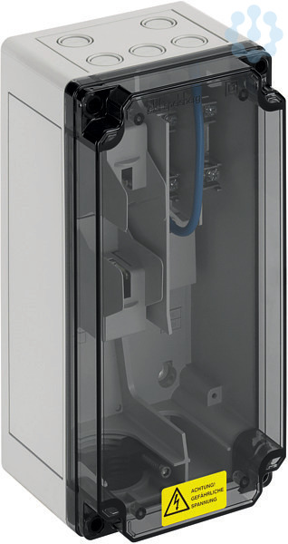 nach VDE-AR-N 4102 (Hausanschlusskasten für einphasigen Anschluss), In=25 A, Imax=63 A, bestückt mit: 1 x NH00 Sicherungselement, 1 x N-Klemme, 1 x PE-Klemme, 1 x PE-N Brücke 10qmm, 1 x Parkbucht für 2 AdernAnschlussklemmen Zuleitung: Prismenklemme (2,5-50qmm CU, 16-50qmm AL)Anschlussklemmen Abgang: Schellenanschluss (2x 2,5-50qmm CU), Deckel transparent
