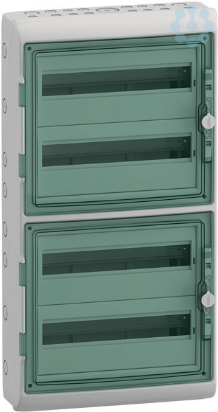 Kaedra Kleinverteiler, IP65. Abmessungen 842 x 448 x 160 mm, TE 4 x 18. Ethernet Head-Adapter Umfasst 1 Adapter pro Quantum Ethernet E/A CPU-Rack. Schutzart IP 65, Schutzart gegen äußere mechanische Beanspruchung IK 09. Glühdrahtprüfung 650 °C. Farbton Gehäuse RAL 7035, Klappdeckel lichtgrün. Gehäuse mit PE-/N-Klemmen. Mehrere Gehäuse mittels M32-Anbaustutzen horizontal und vertikal kombinierbar. Tiefe der DIN-Schiene verstellbar, Mittenabstand zwischen 2 DIN-Schienen wahlweise auf 125, 150 oder 175 mm einstellbar (Werksvoreinstellung 150 mm).