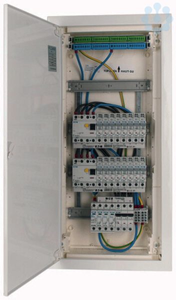 Bestückter, vorverdrahteter und geprüfter xComfort Kleinverteiler KLV nach EN 61439-3 für Wohngebäude und kommerzielle Gebäude. für Hohlwand- und Unterputzmontage. mit 1x HKL Anschlussklemme. 1x PXL 3p. Leitungsschutzschalter 40A. 1x SPCT2 Überspannungsschutz. 2x PFIM Fi-Schutzschalter Typ F. 16x PLI Leitungsschutzschalter 16A. durchgängige Steckklemmtechnik für alle Abgangsstromkreise. Verteiler mit fingersicherer N/PE-Kombisteckklemme in Schutzart IP2X mit kombinierter Schnapp- und Schraubtechnik. Leerplatzabdeckungen inklusive. Schutzklasse II. IP30. IK05. Frontabdeckung plombierbar. Türdrehriegel optional austauschbar durch Sicherheitsschließung. Libelle. 3D-Putzausgleich für schnelle und saubere Montage. inklusive Maueranker für Unterputzmontage. Normen Leergehäuse: EN 62208 und DIN 43871. Normen Schaltgerätekombination: EN 61439-3. Das Gehäuse ist für die Hohlwandmontage geeignet. Für die Hohlwandmontage muss der Hohlwandanker Typ: HWS-KLV, Artikel:178941 separat bestellt werden, dieser ist nicht im Lie