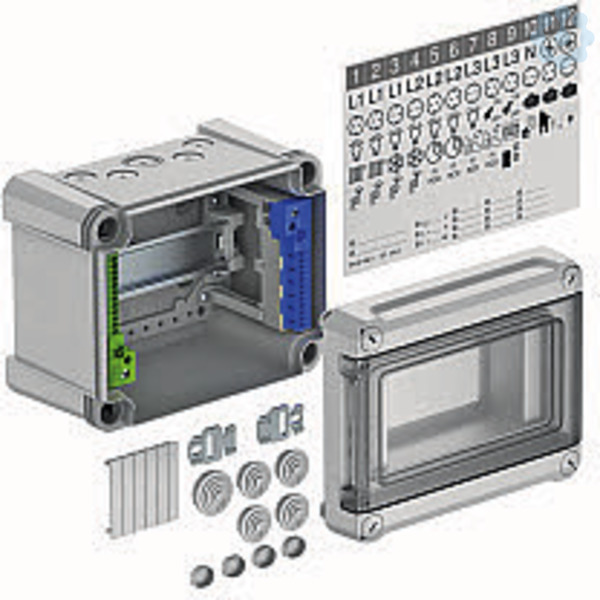 Die OBO Kleinverteiler-Serie sorgt für eine sichere Stromverteilung im Innen- und Außenbereich. Die Aufputz-Kleinverteiler erfüllen alle Anforderungen nach IEC 439-3 und sind in vier verschiedenen Größen mit drei bis zwölf Teilungseinheiten erhältlich. Es gibt drei Ausstattungsvarianten: mit Schraubklemmen, mit Steckklemmen und ohne Klemmen. Alle Größen und Ausstattungsvarianten sind in zwei Materialien verfügbar. Alle Kleinverteiler werden mit einer vormontierten 35 mm Hutprofil-Tragschiene geliefert. Die Kleinverteiler mit Klemmleisten enthalten außerdem ein Zubehörset, das unter anderem einen Aufkleberbogen umfasst. Die selbstklebenden Piktogramme machen die oft lästige Beschriftung der einzelnen Teilungseinheiten überflüssig. Sollte doch einmal eine Beschriftung notwendig sein, sind auch hierfür entsprechende Aufkleber auf dem Aufkleberbogen vorhanden. Die hohe Schutzart (IP66) und die robuste Konstruktion (IK07 bei -25C) sorgen auch bei schwierigen Umgebungsbedingungen für einen sicheren Betrieb. Der erh