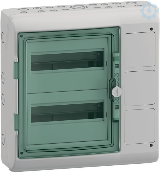 Kaedra Kleinverteiler mit Interface, Anzahl Interface 3 x. Abmessungen 460 x 448 x 160 mm, TE 24. Ethernet Head-Adapter Umfasst 1 Adapter pro Quantum Ethernet E/A CPU-Rack. Norm EN 60439-3. Mit transparenter Sichttür. Schutzart IP 65, Schutzart gegen äußere mechanische Beanspruchung IK 09. Glühdrahtprüfung 650 °C. Farbton Gehäuse RAL 7035, Sichttür lichtgrün. Mehrere Gehäuse mittels M32-Anbaustutzen horizontal und vertikal kombinierbar. Tiefe der DIN-Schiene verstellbar, Mittenabstand zwischen 2 DIN-Schienen wahlweise auf 125, 150 oder 175 mm einstellbar (Werksvoreinstellung 150 mm).