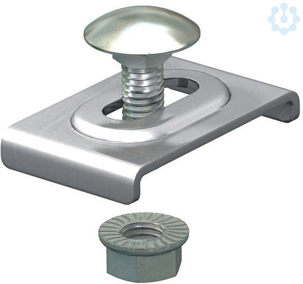 Klemmstück zur Befestigung von Trennstegen in Gitterrinnen, inclusive Flachrundschraube FRS M6 x 20 mit Kombimutter.