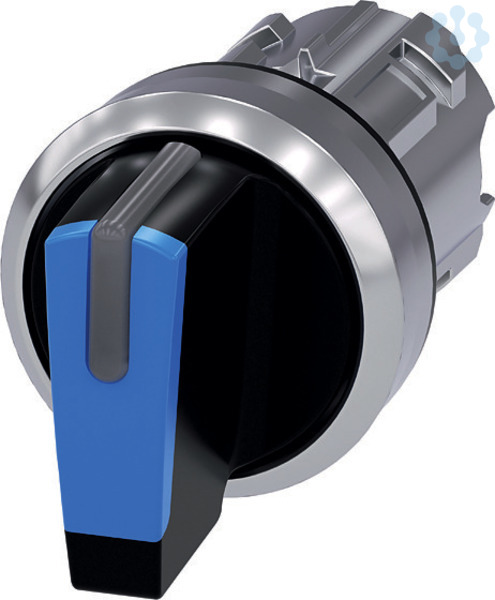 Knebelschalter, beleuchtbar, 22 mm, rund, Metall, hochglanz, blau, Knebel, kurz, 3 Schaltstellungen I>O