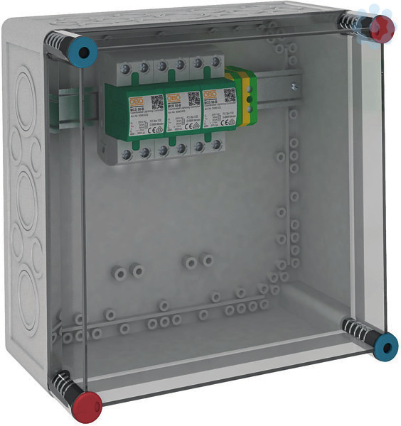 Kombiableiter vorinstalliert im IP65-Gehäuse zum Einsatz in TN-C-Netzen. VG...: Blitzstromableiter-Systemlösung Typ 1 (Klasse B) nach EN 61643-11. LightningController MCD 50-B montiert im Isolierstoffgehäuse IP65, Gehäuse plombierbar Impulsstrom 150 kA (10/350 µs), BET-geprüft Schutzpegel < 1,3 kV Gekapselte, nicht ausblasende Funkenstrecken Geeignet für TN-C-Netz-Systeme Anwendungsbeispiel: Systemlösung für den Einsatz im Vorzählerbereich gemäß VDN-Richtlinie 2. Auflage 2004.