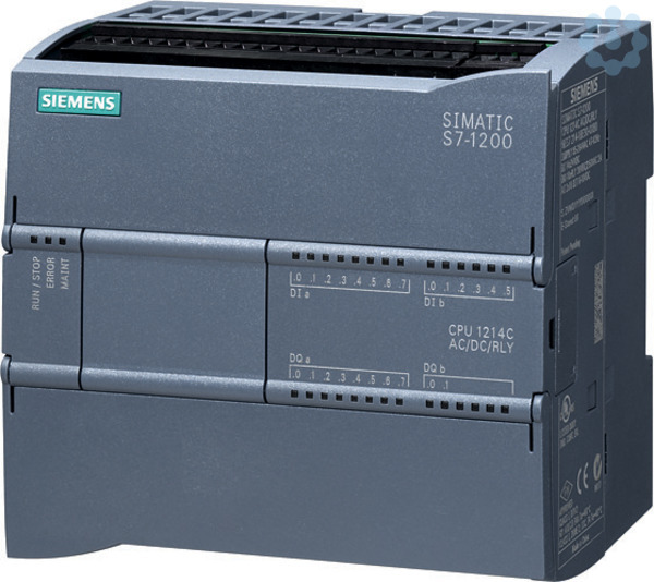 SIMATIC S7-1200, CPU 1214C, Kompakt-CPU, AC/DC/Relais, onboard I/O: 14 DI DC 24V. 10 DO Relais 2A. 2 AI 0-10V DC, Stromversorgung: AC 85-264V AC bei 47-63Hz, Programm-/Datenspeicher 100 KB SIMATIC S7-1200 Basic Controller - flexibel durch vielfältige Kommunikationsmöglichkeiten. Die Basic Controller sind erste Wahl, um Automatisierungsaufgaben im unteren und mittleren Leistungsbereich flexibel und effizient zu lösen. Die Zentralbaugruppen sind in ihrer Leistung skaliert, für unterschiedliche Eingangsspannungen und mit Transistor- oder Relaisausgängen verfügbar. Auch Safety-Varianten sind lieferbar. Neben den bereits integrierten Ein- und Ausgängen lassen sich die Kompakt-CPUs direkt auf dem Gerät oder mit unterschiedlichsten Signal- und Kommunikationsmodulen erweitern, um sie exakt Ihren Anforderungen anzupassen. HMI-Geräte sind über die integrierte Ethernetschnittstelle ebenfalls anschließbar. Der Speicher der CPU lässt sich per Memory Card erweitern, projektiert wird die SPS mit der Software STEP 7 Basic im