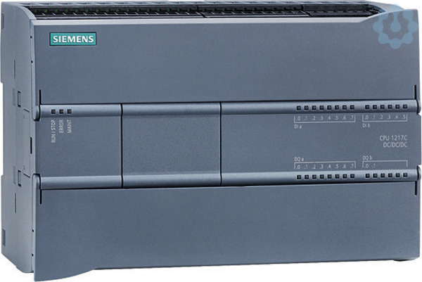 SIMATIC S7-1200, CPU 1217C, Kompakt-CPU, DC/DC/DC, 2 PROFINET Port onboard I/O: 10 DI DC 24V. 4 DI RS-422/485. 6 DO DC 24V. 0,5A. 4 DO RS-422/485. 2 AI 0-10V DC, 2 AO 0-20mA Stromversorgung: DC 20,4-28,8V DC, Programm-/Datenspeicher 150 KB SIMATIC S7-1200 Basic Controller - flexibel durch vielfältige Kommunikationsmöglichkeiten. Die Basic Controller sind erste Wahl, um Automatisierungsaufgaben im unteren und mittleren Leistungsbereich flexibel und effizient zu lösen. Die Zentralbaugruppen sind in ihrer Leistung skaliert, für unterschiedliche Eingangsspannungen und mit Transistor- oder Relaisausgängen verfügbar. Auch Safety-Varianten sind lieferbar. Neben den bereits integrierten Ein- und Ausgängen lassen sich die Kompakt-CPUs direkt auf dem Gerät oder mit unterschiedlichsten Signal- und Kommunikationsmodulen erweitern, um sie exakt Ihren Anforderungen anzupassen. HMI-Geräte sind über die integrierte Ethernetschnittstelle ebenfalls anschließbar. Der Speicher der CPU lässt sich per Memory Card erweitern, projek