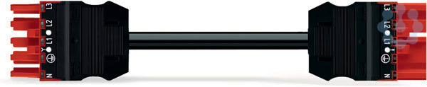 konfektionierte Verbindungsleitung. Cca. Buchse Stecker. 5-polig. Kod. P. H05Z1Z1-F 5G 2,5 mm². 1 m. 2,50 mm². rot