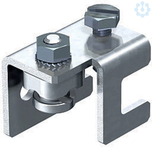 Konstruktionsklemme - Montage des Rundleiters senkrecht oder quer zur Konstruktion möglich - Zum Befestigen an Konstruktionen bis zu einer Flanschdicke von 20 mm - Befestigung an Konstruktionen über eine Sechskantschraube M10 - Entspricht den Anforderungen nach DIN VDE 0185-305-3 Werkstoff: Stahl Passung: Rd 8-10 Gewicht: 30,6 kg/100 St. Typ: 5010 20 FT Art.-Nr.: 5304520