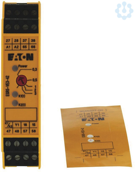 Kontakterweiterung rückfallverzögert, zur Erweiterung der Kontakte an Sicherheitslogikmodulen und Zeitfunktion, einkanaliger Betrieb überwacht, Versorgungsspannung 24VDC, 4 Freigabestrompfade (IEC/EN 60204 Stopp-Kategorie 1) - es wird maximal die Stopp-Kategorie des Grundgerätes nach IEC 61508 und IEC 60204 erreicht, 2 Meldestrompfade, Berührungsschutz nach EN 50274 bei senkrechter Betätigung von vorne finger- und handrückensicher, geeignet für PL d, Kat. 3 nach EN ISO 13849-1 / SILCL3 nach IEC 62061 / SIL3 nach IEC61508