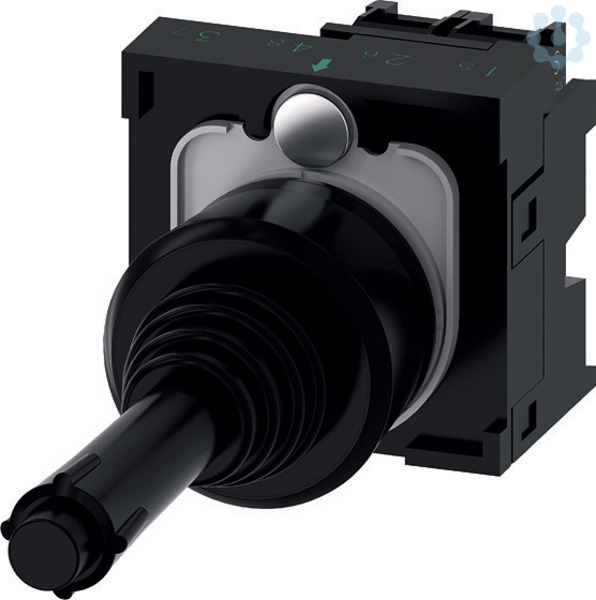 Koordinatenschalter, 22 mm, rund, Kunststoff, schwarz, 2 Schaltstellungen, senkrecht, tastend, mit mechanischer Verriegelung in der O-Stellung, mit Halter, 1S, 1S, Schraubanschluss Koordinatenschalter SIRIUS ACT für einfache Navigationsaufgaben.Unter dem Markennamen SIRIUS ACT bietet Siemens ein einzigartiges Portfolio an Befehls- und Meldegeräten mit weltweiten Produkt-Zulassungen in vier modernen Designreihen aus robustem Echtmetall und hochwertigem Kunststoff.Das innovative Aufschnappkonzept vereinfacht die Montage so weit, dass dafür nur eine Hand und kein Spezialwerkzeug erforderlich ist. Als Montagebohrungen genügen nutfreie Löcher, da bereits ein 100%iger Verdrehschutz integriert ist.Dank der durchgängig hohen Schutzart sind die robusten Geräte industrietauglich und für den Außeneinsatz geeignet. Sogar die Reinigung mit Hochdruckstrahl ist möglich. Weder Staub, Öle noch aggressive Laugen können den zuverlässigen Betrieb stören.Neben der Standardverdrahtung können die Geräte auch über PROFINET, AS-Inter