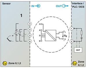 Ausgangsschleifengespeister Kopftransmitter zur Übertragung von RTD- und TC-Sensorsignalen sowie von Widerstands- und Spannungsgebern über die HART(R)-Kommunikation oder 4 mA ... 20 mA, frei konfigurierbar, Eigensicherheit, Schraubanschluss.