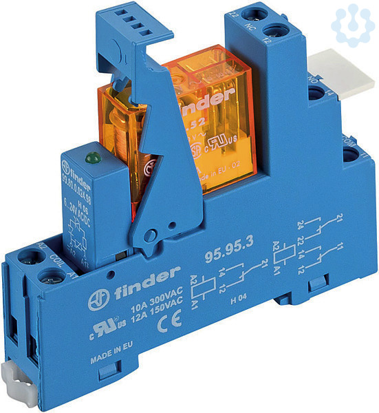 Koppelrelais für DIN-Schiene mit Schraubanschlüssen, 2 Wechsler 8 A / 250 V AC, Spulenspannung 24 V AC, Kontaktmaterial AgNi, mit integrierter LED und EMV-Entstörung